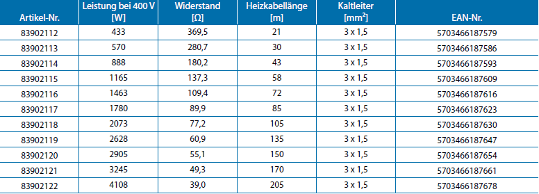 Ihr Rundprofil und die robuste Konstruktionsweise ermöglichen eine schnelle, unkomplizierte und sichere Installation. Typische Anwendungen sind Dach-, Dachrinnen- und Fallrohrheizung sowie Freiflächenheizungen.
