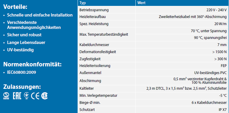 DEVIsnow™ ist ein extrem hochqualitatives Zweileiterheizkabel. Es verfügt über